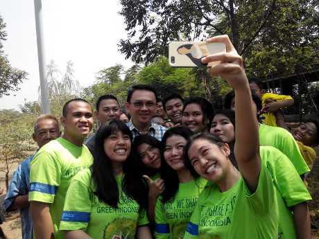 Saat Ahok hendak menanam pohon, puluhan warga yang tinggal di tepi kali berebutan ingin menjabat tangan orang nomor dua di DKI itu. "Pak Ahok... Pak Ahok... foto dulu, Pak," teriak ibu-ibu yang membawa anak-anaknya.