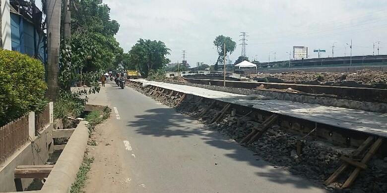 Pembenahan jalan ini bersamaan dengan pembenahan jalan inspeksi di Kalijodo. Pantauan Kompas.com, sisi di Jalan Bidara Raya tampak sudah ditinggikan.