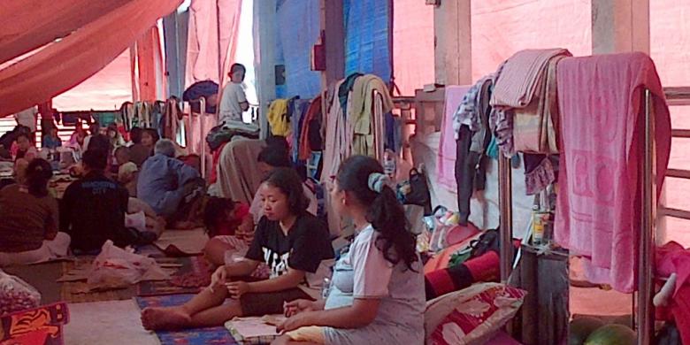Halte yang menampung lebih dari 30 kepala keluarga itu didominasi kaum ibu dan anak-anak. Beberapa ibu dan anak tengah tiduran, sebagian memilih duduk-duduk di lantai halte, ada pula yang sedang menguliti bawang.